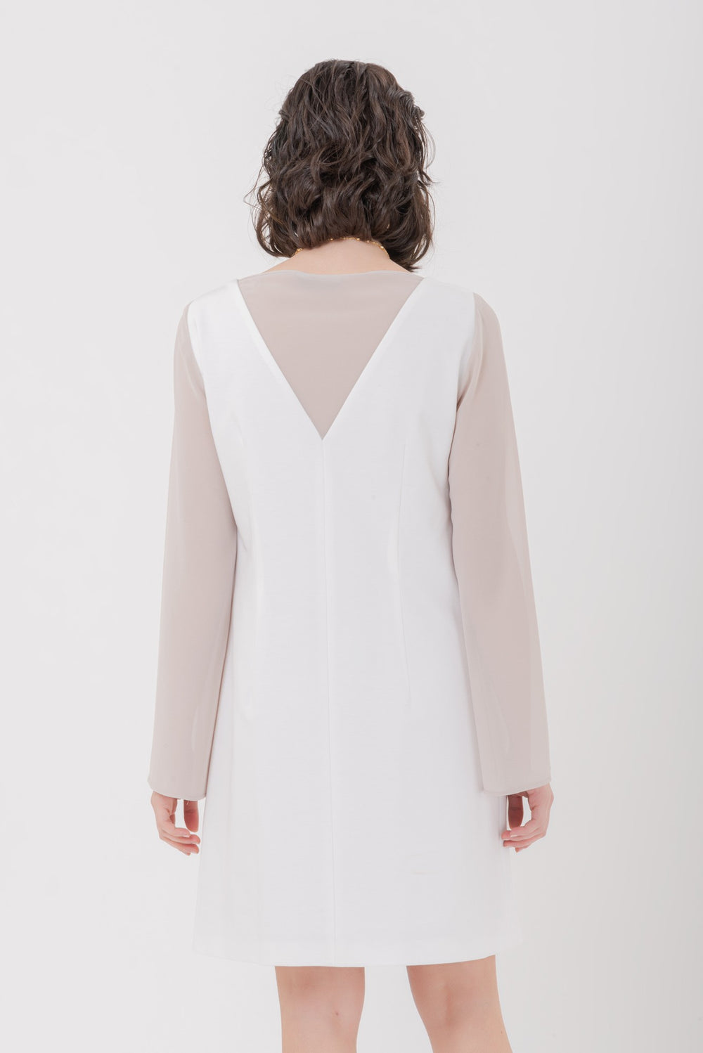 Abito Linea Trapezio in Crepe Cady con maniche lunghe e dettaglio scollo posteriore in georgette a contrastoApertura con zip invisibile lateraleFodera interna COD: C0S-A118S02-V01