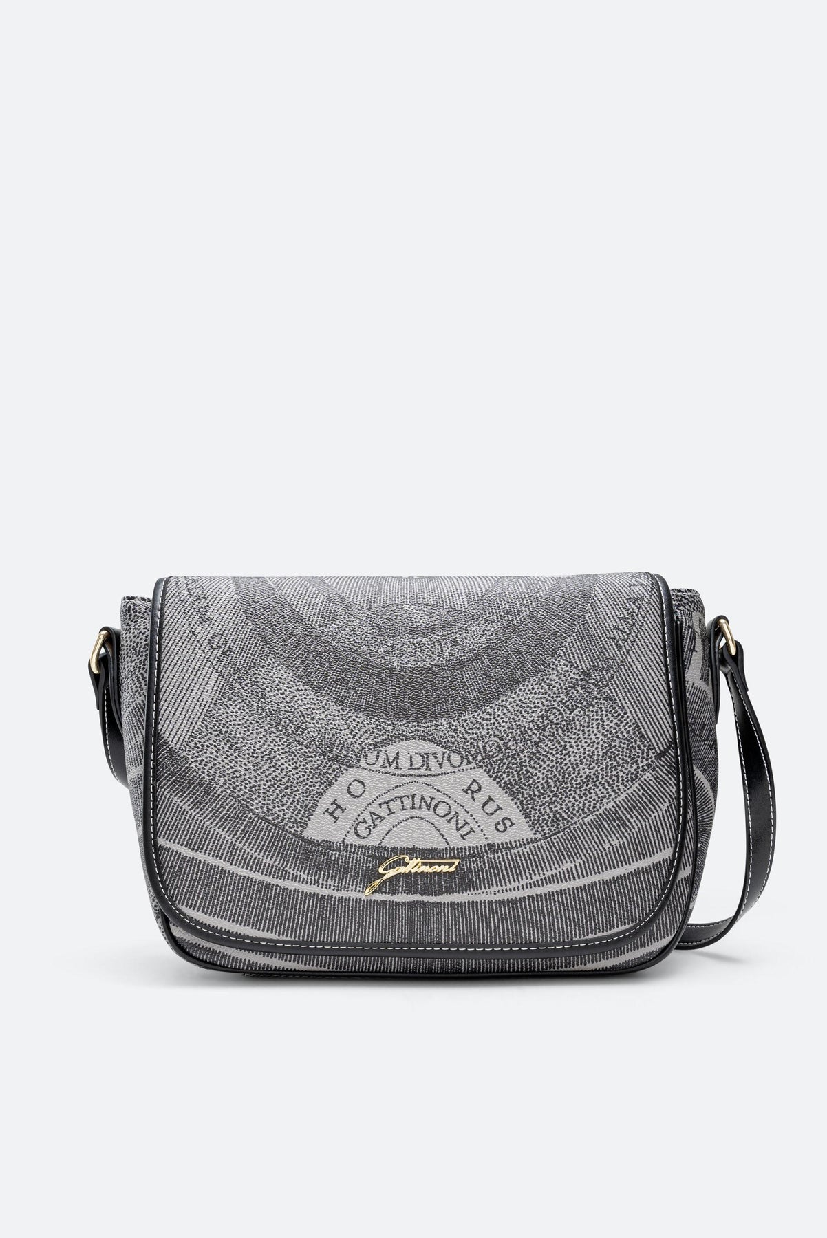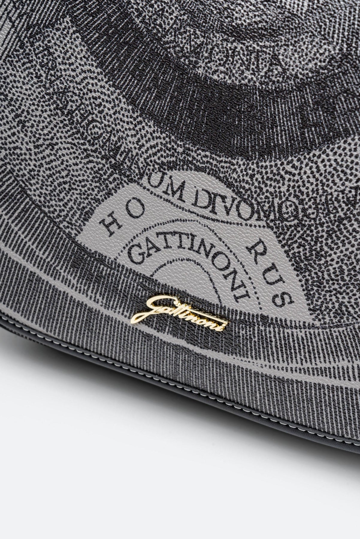 Materiale principale: 100% pelle sintetica. Materiale secondario: 100% pelle. Fodera: 100% poliestere. Dimensioni:27X23X11 cm. Chiusura: pannello con zip. Lunghezza tracolla: luce manico 23 cm. Parti metalliche e loghi: metalleria oro - Logo metallo Gattinoni corsivo - Tiralampo metallo logato Gattinoni corsivo e G cerchiato - Borchie G logate. Tasche interne: 1 tasca piatta - 2 tasche portacellulare. Piedini sul fondo. Made in P.R.C..