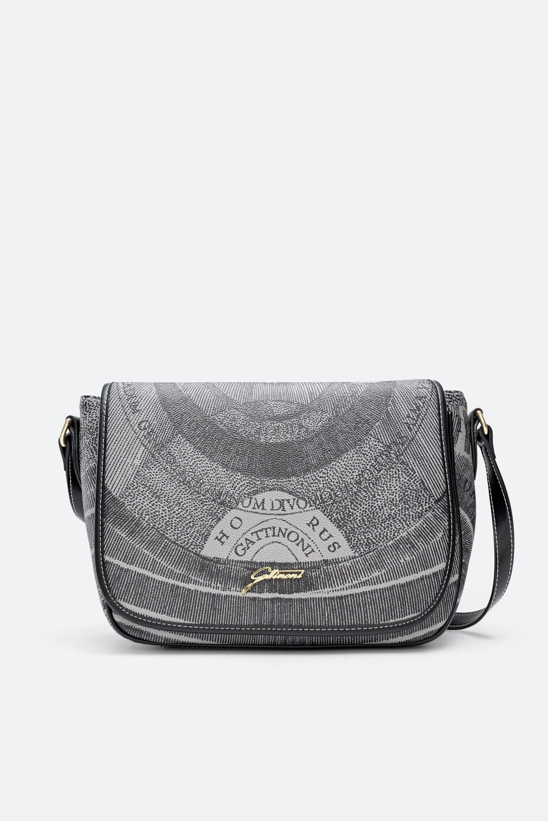 Borsa a Tracolla con Doppia Zip Planetarium Diana Finitura in Pelle colore Marrone Scuro
