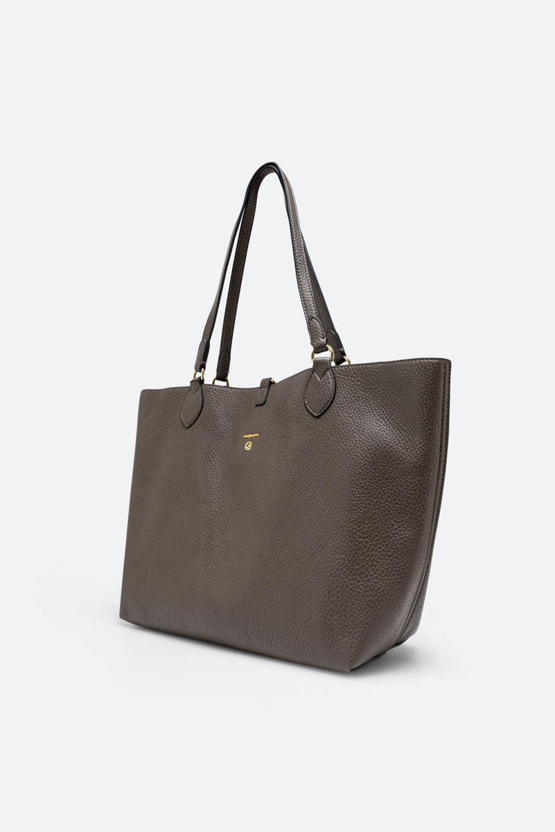 Borsa reversibile nella variante piccola, che presenta un lato unito in pelle sintetica e un lato stampato nella versione Planetarium Wild in tela spalmata. All'interno è presente una pochette in tela spalmata Planetarium Classic dotata anche di tracolla staccabile e regolabile.la pochette è anche dotata di tasca itnerna con zip.