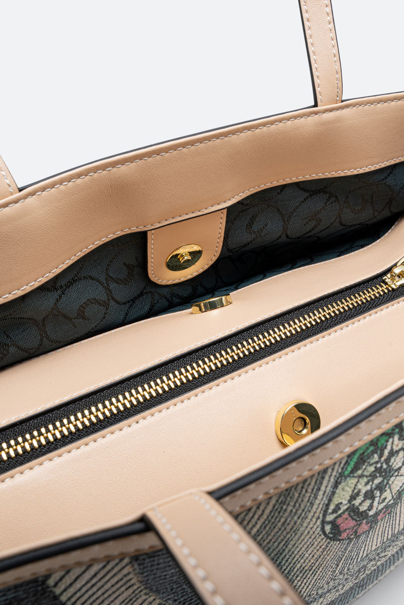 Immergiti nella raffinatezza senza tempo di Gattinoni con la Shopping Bag Planetarium. Questo capolavoro di stile è la fusione perfetta di patrimonio e innovazione del marchio. Realizzata in un mix di PVC e pelle, la borsa si distingue per il suo disegno Planetarium Watercolor, evocando un senso di eleganza cosmica. La borsa, con le sue tonalità acquerello, è un omaggio alla ricchezza cromatica e alla creatività che contraddistingue Gattinoni da oltre settanta anni. Con una tracolla regolabile e amovibile, offre versatilità e comfort, mentre l'interno, dotato di una tasca aperta più una con zip, assicura spazio e organizzazione per i tuoi oggetti essenziali. La chiusura a clip e zip offre sicurezza, mentre i piedini sul fondo proteggono la borsa da usura e sporco. Il logo Gattinoni sulle metallerie sottolinea la qualità e l'attenzione al dettaglio che contraddistinguono il marchio. La Shopping Bag Planetarium, leggera ma resistente, è un elemento essenziale per l'elegante donna cosmopolita. Lasciati trasportare nel mondo di Gattinoni, dove la moda incontra la funzionalità senza compromessi.