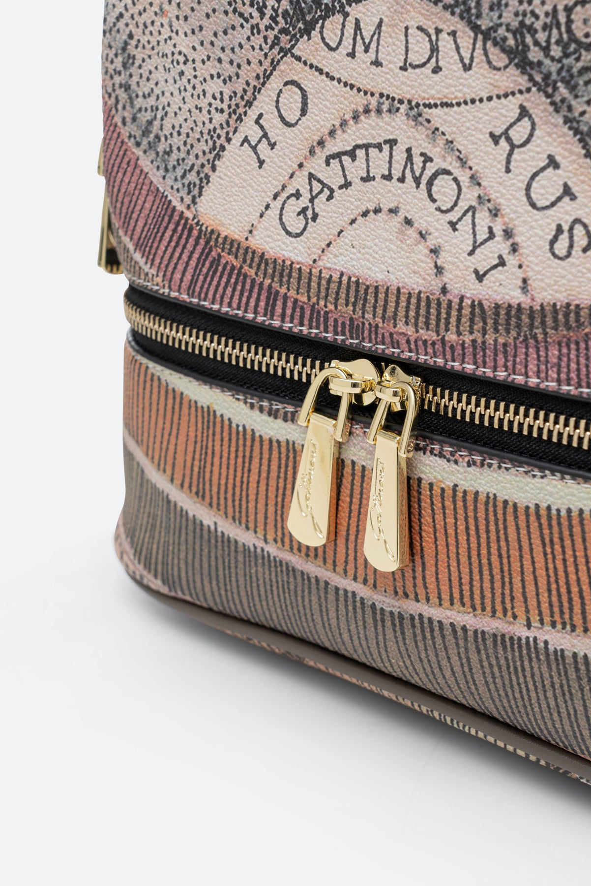 Zaino misura medium in tela spalmata Planetarium Watercolor, con chiusura con zip, tasca ampia frontale con zip, non molto profonda, adatta a contenere oggetti non spessi. Seconda tasca frontale più piccola, adatta a piccoli oggetti come penne o portachiavi.